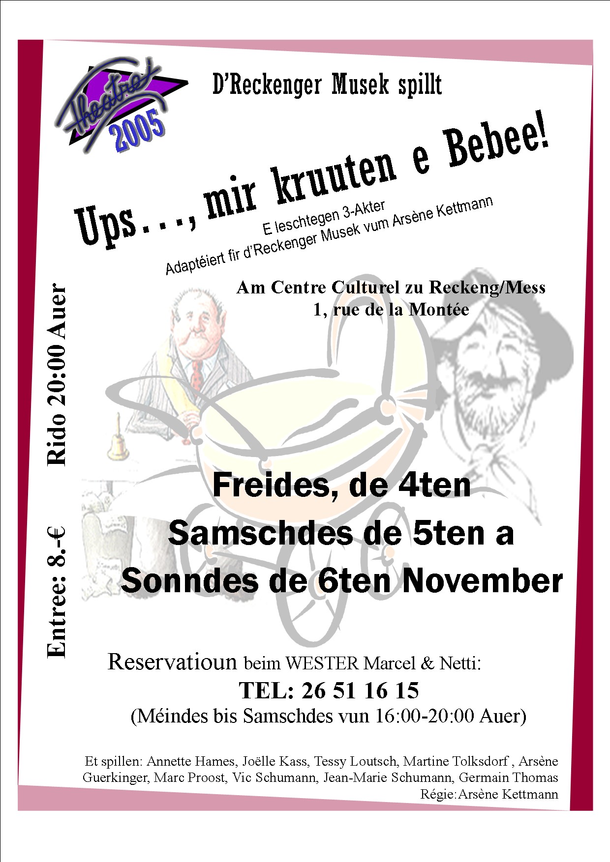 Martine Draut, Andrée Gindt, Annette Hames, Lis Thomas, Josiane Van de Sluis, Arsène Guerkinger, Nicky Hames, Jean-Marie Schumann, Germain Thomas, Christian Tolksdorf, Alex Van de Sluis